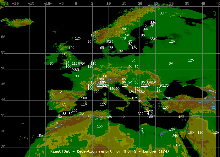 2008-05-05 22:41:15 | karsten (45.4N-6.1E,0cm) ? Dose any body knoves how big a disch you need in the Geneva erria to cath the danish channels on thor 5 T1 beam? 120cm ore more? |
